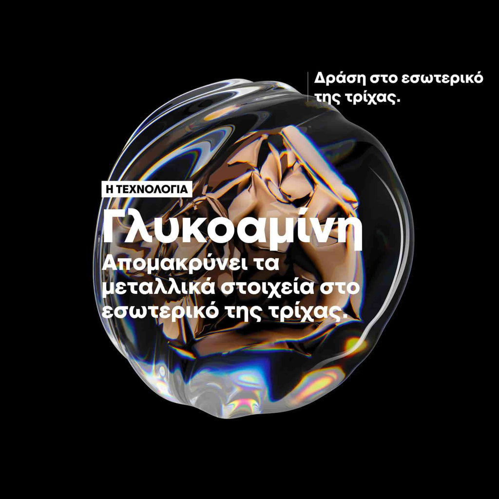 Απομακρύνει τα μεταλλικά στοιχεία στο εσωτερικό της τρίχας και αποτοξινώνει τα μαλλιά, προσφέροντας τους ελαστικότητα, ανθεκτικότητα και λιγότερο σπάσιμο.
