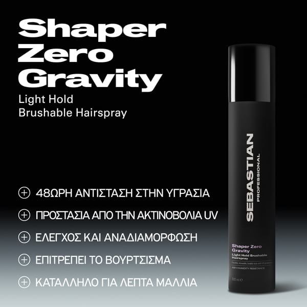 Αποκτήστε ελαφρύ και φυσικό κράτημα με τη Shaper Zero Gravity Λακ της Sebastian Professional.