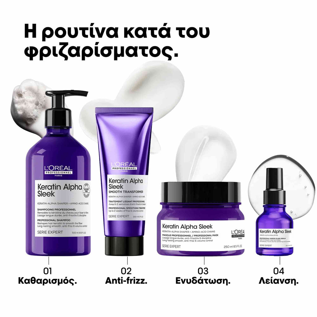 Ανακαλύψτε το νέο επαγγελματικό σαμπουάν χωρίς θειικά άλατα από τη νέα σειρά Keratin Alpha Sleek της L'Oreal Professionnel.
