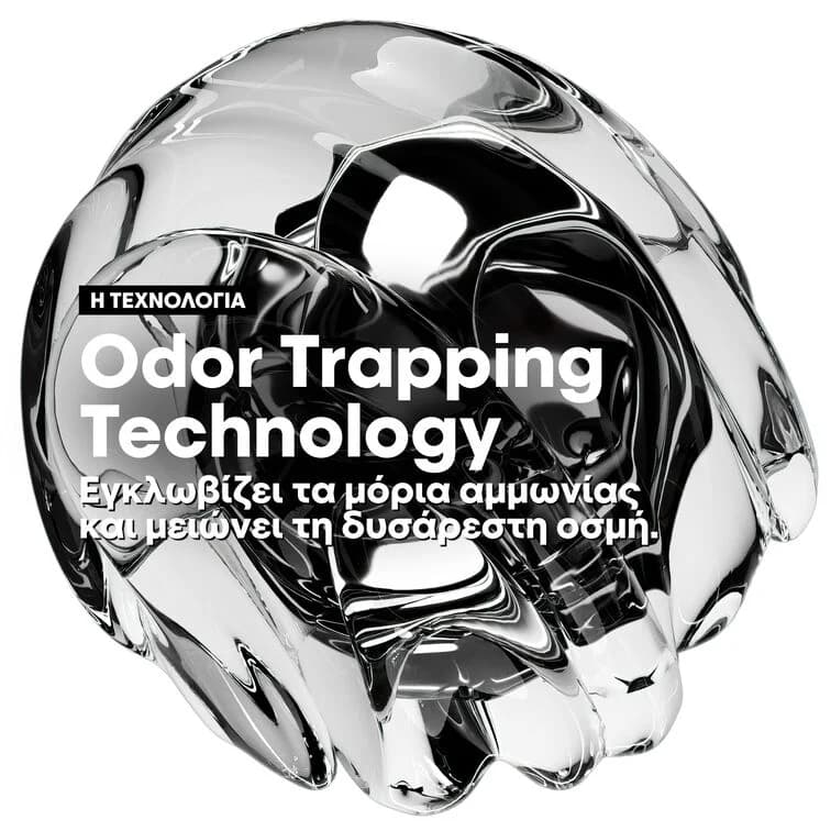 Αυτή η καινοτόμος τεχνολογία παγιδεύει τα μόρια αμμωνίας, μειώνοντας την οσμή της έως και δύο φορές, ενώ παράλληλα μεγιστοποιεί την απόδοση του χρώματος.